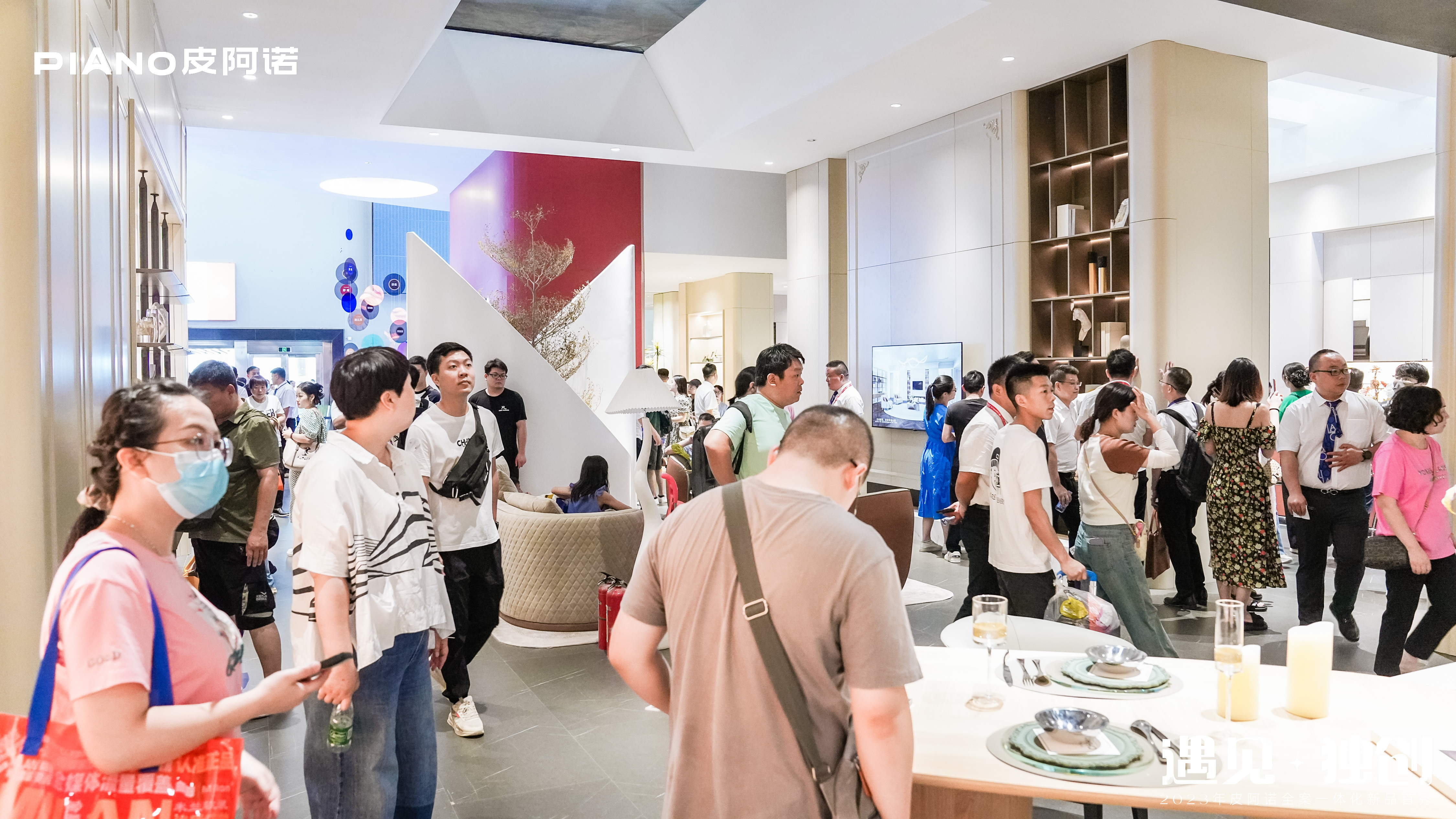 皮阿諾在此次展會中帶來國潮輕奢風-青律系列和現代簡歐風-西雅圖系列兩款全案一體化新品,以全新的方式演繹輕高定家居潮流美學空間,吸引了海量觀眾、意向加盟商、主流媒體以及商會協會等的高度關注,紛紛前來打卡參觀,親臨感觸,探尋美好生活更多可能。