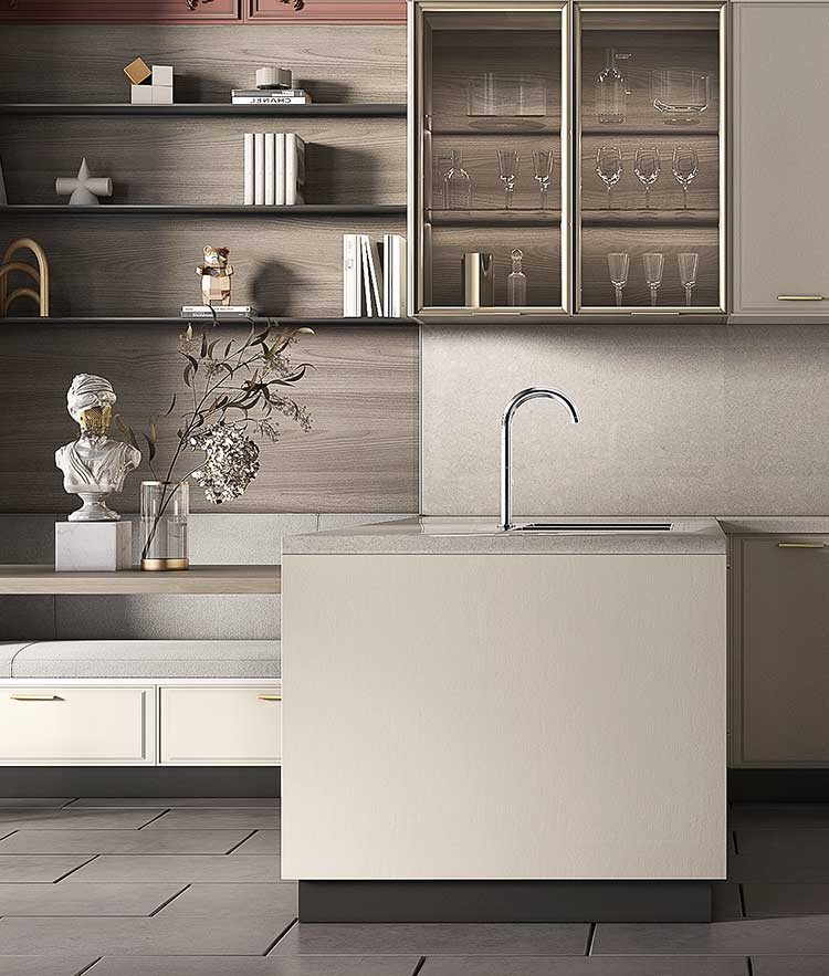 如夜空中的繁星,給人無限美好遐想,整體配色選用流星白做為產品基調,搭配多瑙灰石英石臺面,盡顯現代簡約自由的腔調。